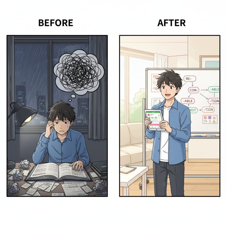 「もう単語暗記で消耗するのはやめたい」と思った人だけ、続きを読んでください。